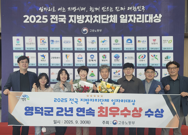 영덕군, 전국 지자체 일자리 대상 2년 연속 최우수상영덕군, 전국 지자체 일자리 대상 2년 연속 최우수상 - 민선 8기, 지속 가능한 지역 일자리 창출로 목표 초과 달성 - 영덕군은 지난달 30일 고용노동부가 주최한 ‘2025년 전국 지방자치단체 일자리 대상’에서 작년에 이어 2년 연속 ‘최우수상’을 거머쥐었다. ‘전국 지방자치단체 일자리 대상’은 매년 일자리 대책 추진 실적이 우수한 전국 지자체를 선정해 수여하는 상으로, 지방고용노동지청의 1차 평가, 고용노동부의 2차 평가를 거쳐 선정되는 만큼 매우 엄격해 일자리 분야에선 전국 최고의 권위를 가졌다. 이번 심사에서 영덕군은 계획, 집행, 성과 모든 부분에서 우수한 평가를 받았고, 특히 지방 소멸에 대응하기 위해 청년들에게 공유주거 제공하고 취∙창업을 지원한 점, 청년 커뮤니티 ‘알뜰살뜰 청년 일자리 플러스’ 운영 사업을 통한 청년 유입의 사회 기반을 조성한 점에서 높은 평가를 받았다. 또한, 영덕군은 ‘좋은 일자리로 만드는 활기찬 영덕’이라는 비전을 바탕으로 △농산어촌의 경쟁력 있는 일자리 △문화·관광 산업 활성화와 연계한 일자리 △청년이 머물 수 있는 일자리 △양질의 노인 일자리 등 지역 특색을 반영하고 청년부터 노인을 아우르는 일자리 창출로 지역경제를 활성화하고 있다. 그 결과 영덕군은 애초 일자리 창출 목표를 103.7%로 초과 달성하는 성과를 거뒀으며, 최근 5년간 고용률이 1.6% 지속 상승,상용근로자 수 103.2%, 고용보험 피보험자 수 100.6% 등의 지표에서 나타나듯 고용의 안정성도 함께 이루고 있다. 이러한 성과는 민선 8기 출범과 동시에 대규모 민자유치, 생산·유통 기반시설 조성, 웰니스 관광산업 활성화, 청년에 대한 다양한 지원 등 단기적인 일자리보다 지속 가능한 지역 일자리를 창출해 온 결과라 평가할 수 있다. 김광열 영덕 군수는 “산업기반이 부족한 지역 상황에도 불구하고 2년 연속 일자리 최우수상을 받게 된 것은 군민과의 긴밀한 소통을 통해 얻은 현장의 요구를 행정에 적극 반영하고 이를 직원들이 지역의 특색에 맞게 효과적으로 현실화해 낸 결과”라며, “지속 가능하고 군민이 행복한 영덕을 만들어 나가기 위해 다시금 책임감을 다잡고 양질의 일자리 창출과 고용 안정에 온 힘을 다하겠다”라고 소감을 밝혔다.2025-10-13 -