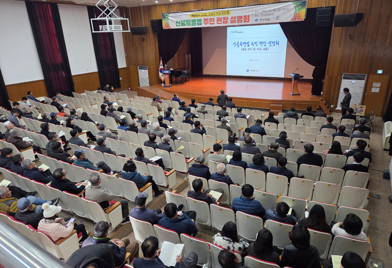 경북도·영덕군, 산불특별법 주민 현장 설명회 개최경북도·영덕군, 산불특별법 주민 현장 설명회 개최 - 피해 복구·지원 체계 등 특별법 설명하고 피해 주민 의견 수렴 - 경상북도(산림재난혁신사업단)과 영덕군은 지난 3월 말 발생한 경북산불로 피해를 본 영덕읍·지품면·축산면 주민들을 대상으로 11월 28일 영덕읍 군민회관에서 설명회를 개최했다. 이번 설명회는 지난 3월 21일부터 3월 30일까지 발생한 초대형 산불로 신체적·정신적·재산상 피해를 본 주민들의 피해 구제와 지원을 위해 제정된 ‘경북·경남·울산 초대형 산불 피해 구제 및 지원 등을 위한 특별법’의 주요 내용을 설명하고 주민들의 의견을 수렴하기 위해 이뤄졌다. 이 자리엔 피해 주민을 비롯해 김광열 영덕군수, 영덕군의회 김성호 의장, 황재철 경상북도의원, 박준일 산림재난혁신사업단장, 산불특별법 관련 경북도·영덕군 공무원 등이 참석했다. 주요 내용은 △피해 지원 및 재건위원회 설치 및 구성 △피해자 지원 체계 △피해지역 복구 및 지역 재건 지원 △산림 복구 관련 주요 사항 △산림 투자 선도지구 지정 △보칙 및 벌칙 규정 등이다. 이어 주최 측은 설명회를 마친 후 피해 주민들의 건의 사항과 의견을 수렴하고, 각종 보상·지원과 피해지역 복구에 관한 질의 응답하는 자리를 마련했다. 이 자리에서 주민들은 기존 재난안전법에서 소외돼 보상·지원 대상에서 제외된 산불 피해 사각지대를 섬세하게 살펴 폭넓은 보상과 지원이 이뤄질 수 있도록 노력해달라는 의견을 주최 측에 전달했다. 김광열 영덕군수는 “경북도와 산불 피해 주민의 소중한 의견을 들을 수 있는 자리”였다며, “사각지대 피해 항목을 한 건도 빠짐없이 꼼꼼히 살펴 피해 주민들이 지원을 받지 못하는 일이 없도록 경북도와 긴밀히 협력해 이행하겠다”라고 말했다.2025-12-08 -