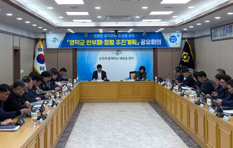 영덕군, 반부패·청렴 추진계획 공유회의 개최영덕군, 반부패·청렴 추진계획 공유회의 개최 - 부서별 청렴 시책·과제 성과 점검해 ‘믿음 행정’ 실현 - 영덕군은 청렴하고 건전한 조직문화를 수립하기 위해 지난 17일 청사 제1회의실에서 ‘2026년 반부패·청렴 추진계획 공유회의’를 열었다. 이 자리엔 김광열 영덕군수를 비롯해 각 부서장과 읍·면장 등 간부 공무원 30여 명이 참석해 지역 실정에 맞는 부패를 방지하고 청렴 문화를 확산하는 방안을 논의했다. 이에 이번 회의는 △부패 취약 분야 집중분석 보고 △부패 취약 분야 연계 회의 △반부패·청렴 추진계획 공유·논의 등의 순으로 이뤄졌다. 특히, 단순히 청렴도를 측정하는 점수만 높일 것이 아니라 청렴한 공직문화가 실질적으로 자리 잡을 수 있도록 부서마다 청렴 시책 실천과 추진 과제 이행에 대한 성과를 관리키로 했으며, 분기별로 이행점검 회의를 열어 추진 상황을 점검하고 부족한 부분을 개선하는 방안도 함께 마련하기로 했다. 김광열 영덕군수는 “청렴은 서류 속에만 있는 거창한 약속이 아니라 군민이 실질적으로 신뢰할 수 있는 행정을 완성해 나가는 과정”이라며, “모든 공직자가 낡은 관행을 벗어던지고 군민이 피부적으로 느낄 수 있는 변화를 만들어 갈 수 있도록 끊임없는 내부 혁신을 이뤄가겠다”라고 밝혔다. 한편, 영덕군은 2024년 공공기관 종합청렴도 조사에서 2012년 이후 처음으로 종합 청렴도 3등급을 달성한 바 있다.2026-03-20 -