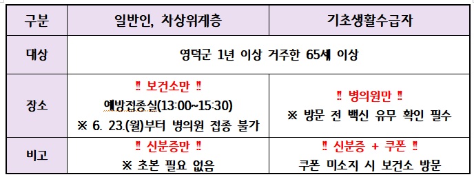 대상포진 예방접종 장소 재지정 안내