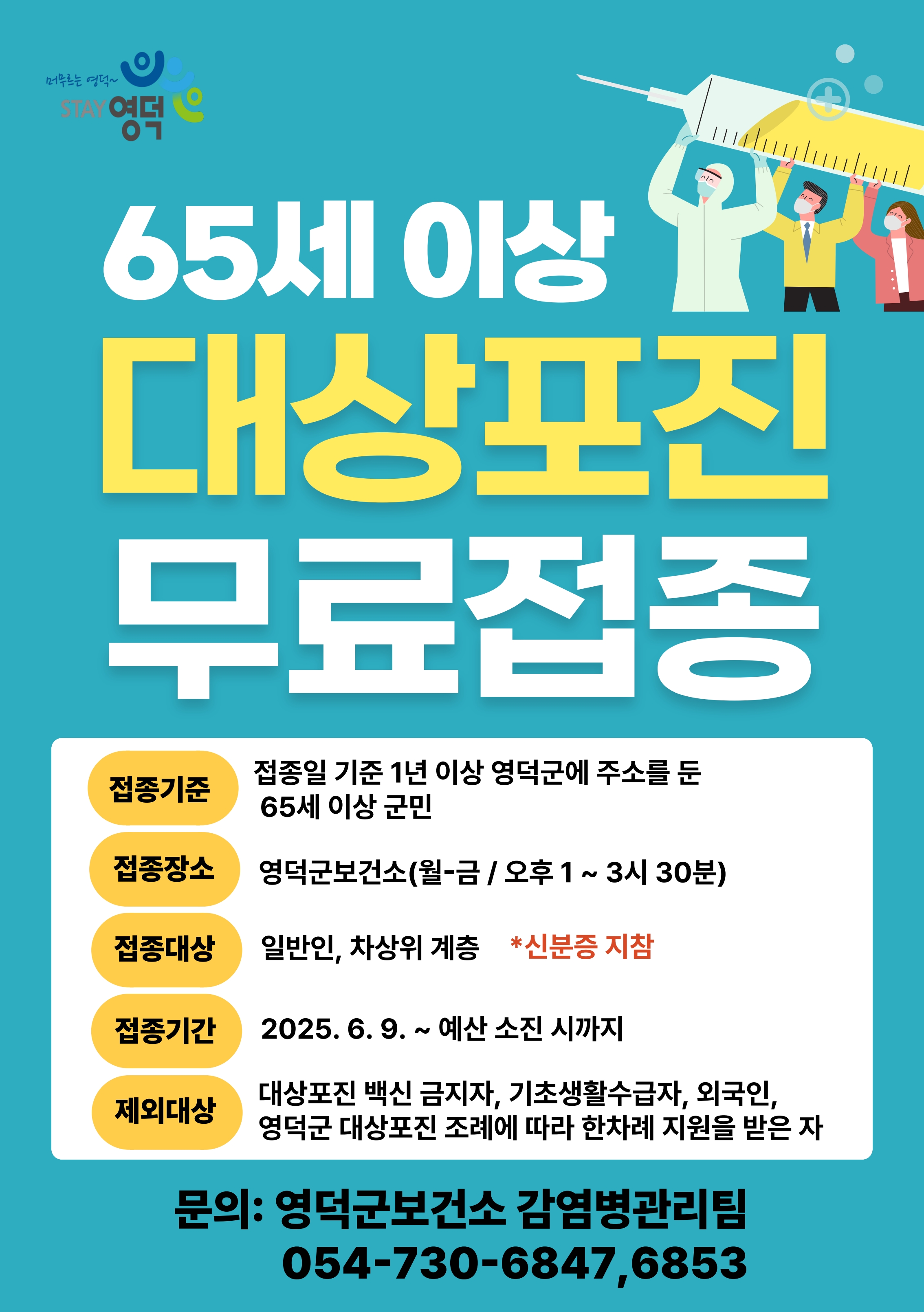 1. 접종기준: 접종일 기준 1년 전부터 영덕군에 주민등록을 둔 65세 이상 영덕군민(1960. 12. 31. 이전 출생자)